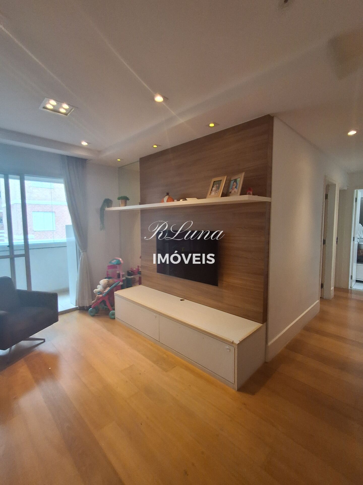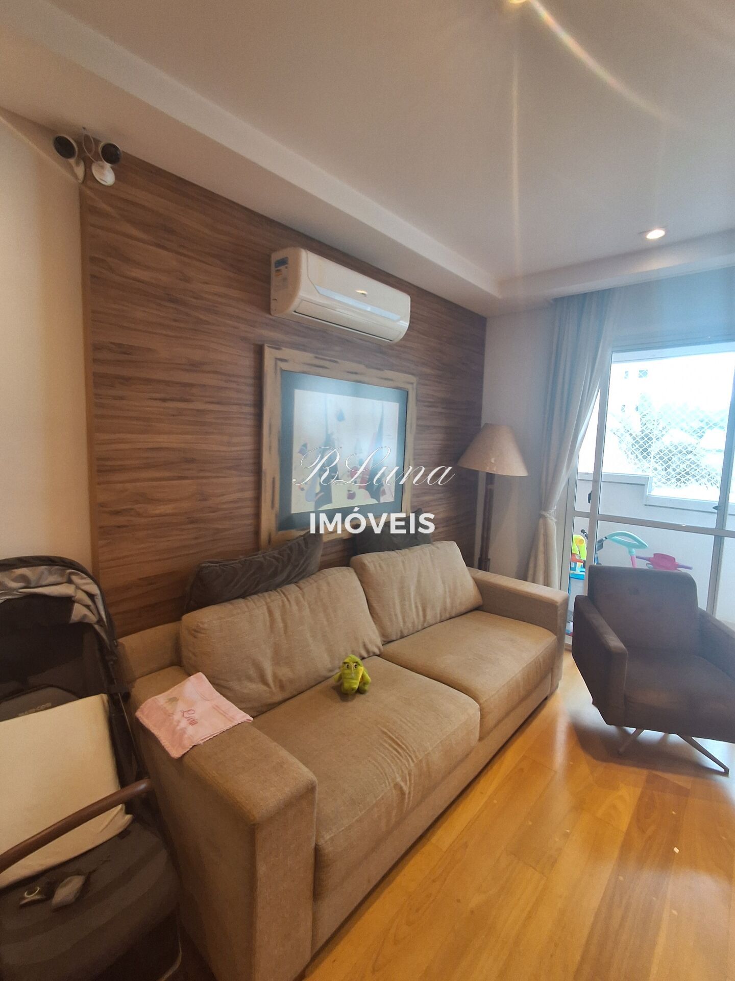 Sala para 2 ambientes com ar condicionado, sofá, Rack ,