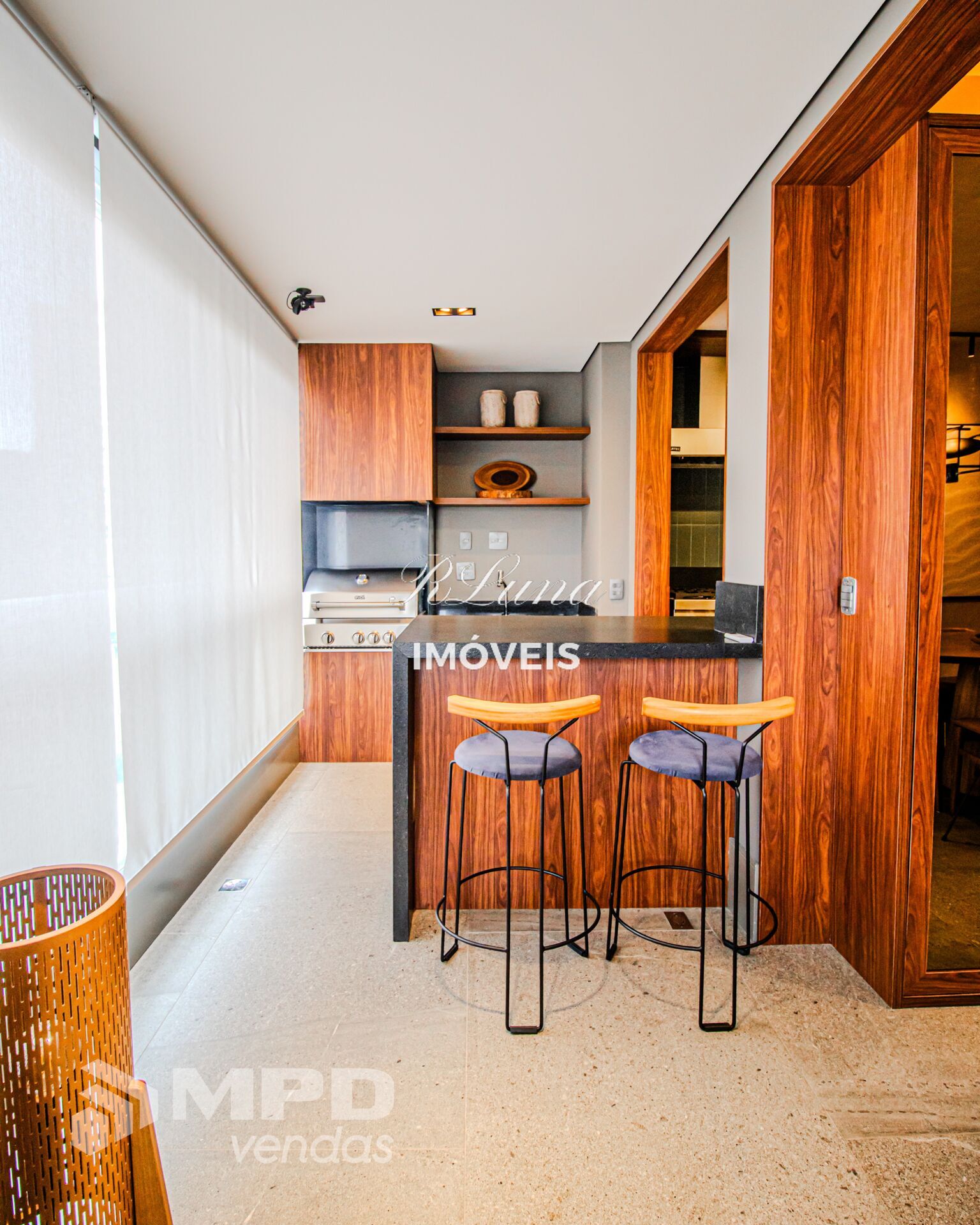 Sacada Gourmet e fechamento em vidros, persianas,