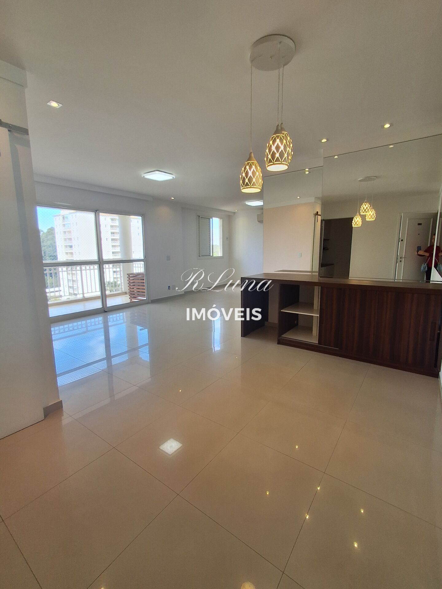 Sala ampla para 3 ambientes com sacada Ampla