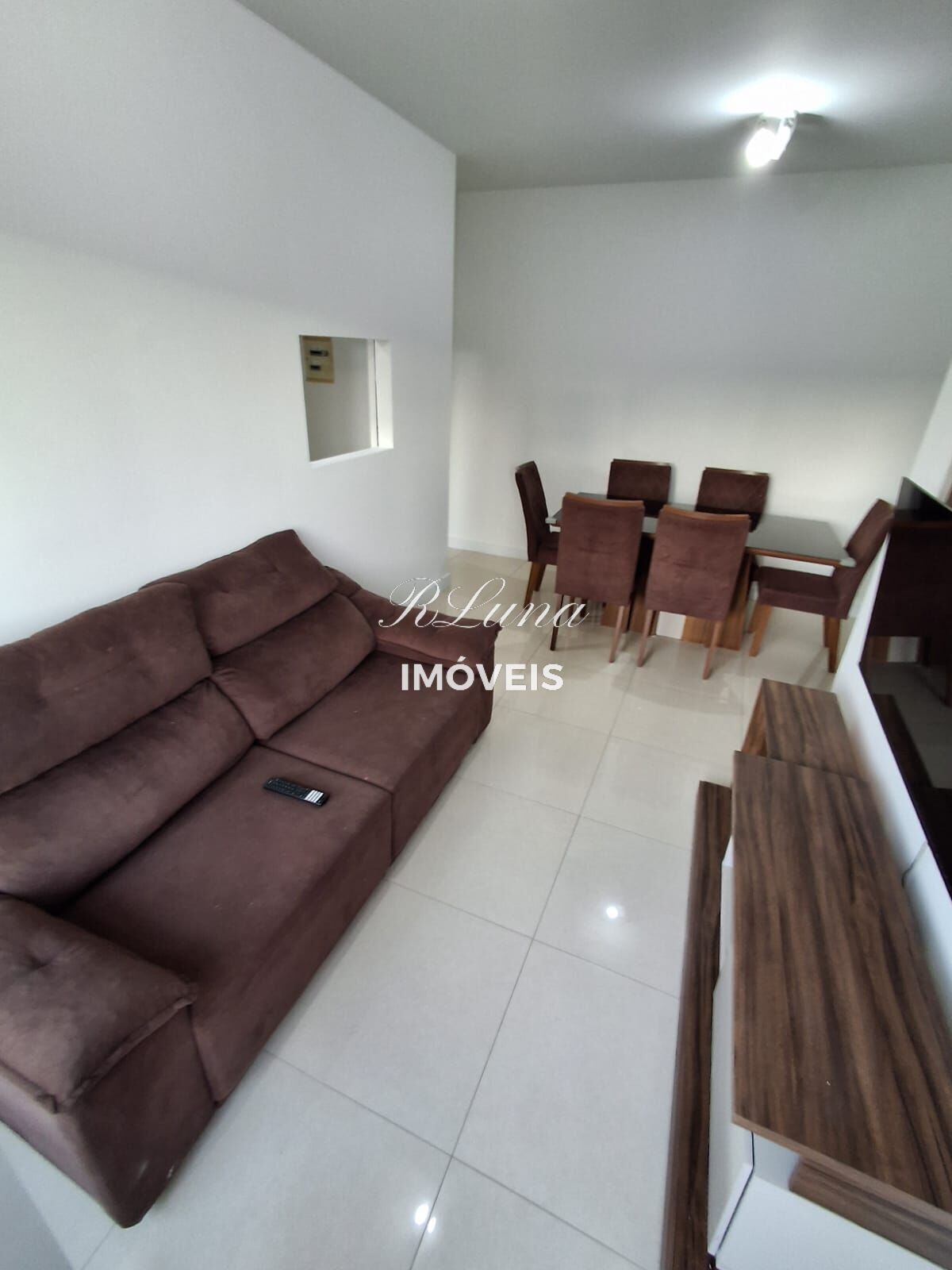 Sala para 2 ambientes com Sofá, Rack mesa de jantar e cadeiras