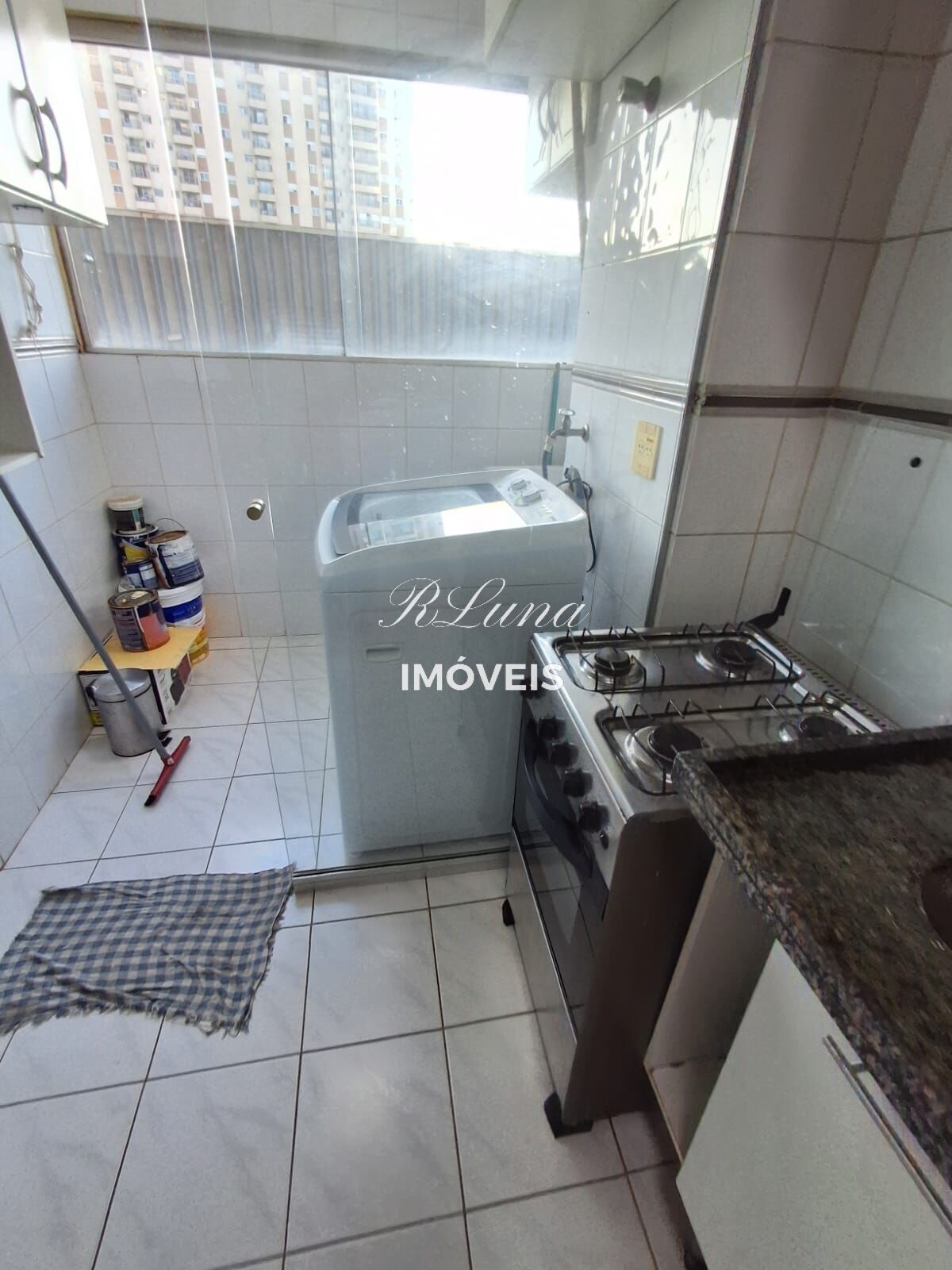 Área de serviço com máquina de lavar roupas,