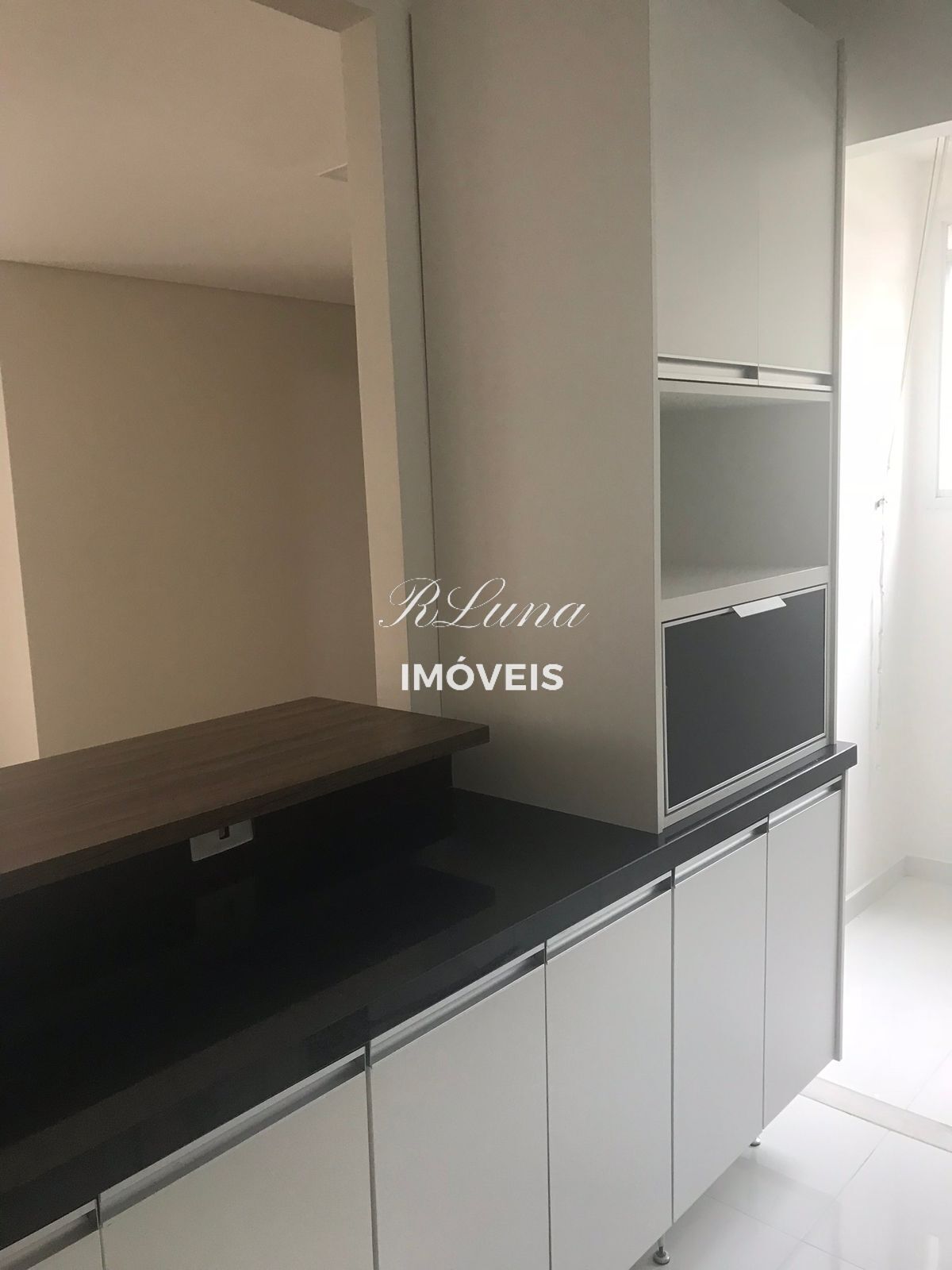 Cozinha aberta e moderna, completa de armários