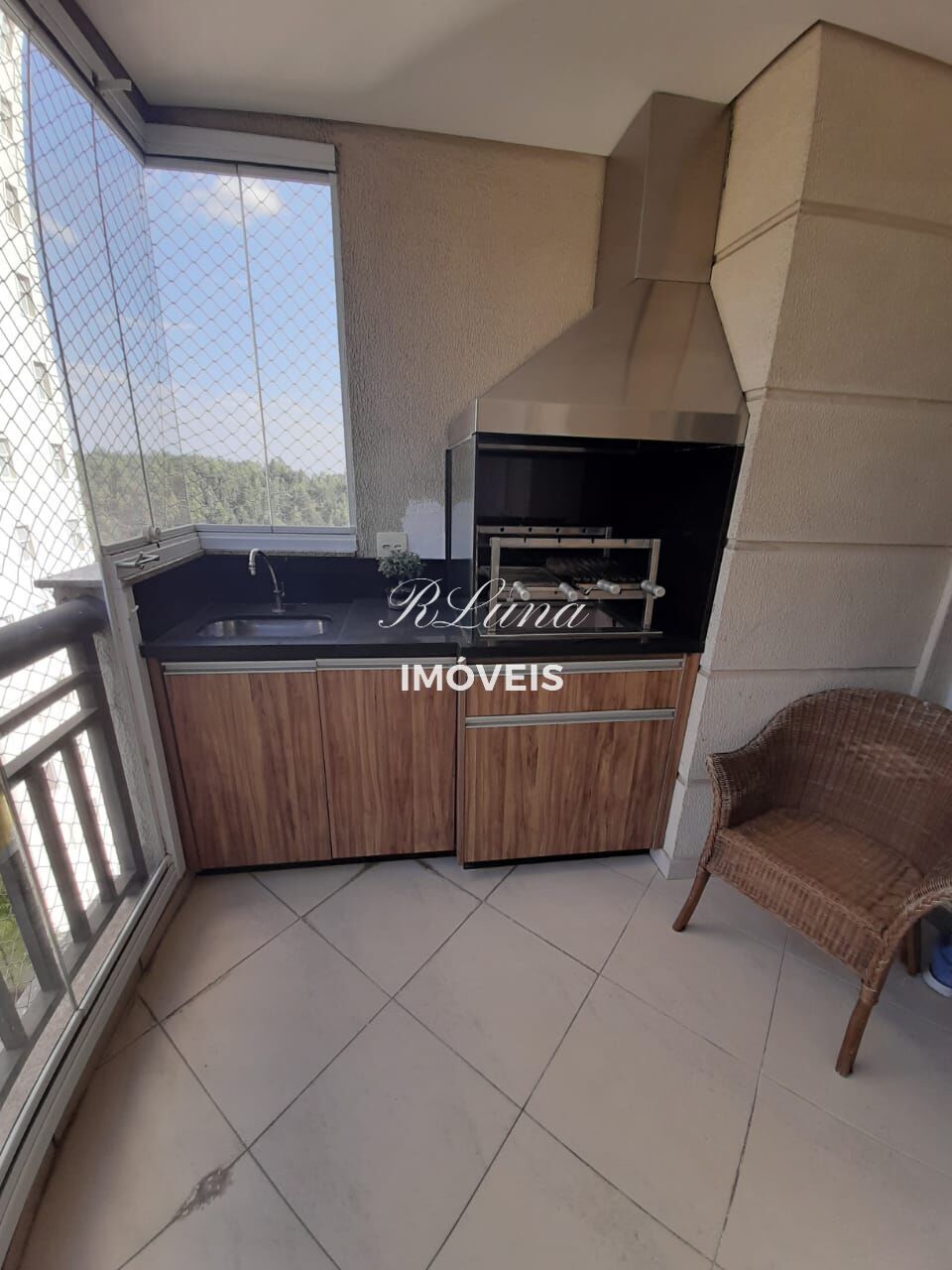 Sacada Gourmet com churrasqueira e Fechamento em vidros